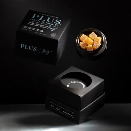 x Biscotti Hash Gummies – MAC Strain gummy, 0.1g or 100 milligrams, a tenth of a gram, from the PLUS brand offering a hybrid experience with 100.0mg THC with 2.5mg CBD.